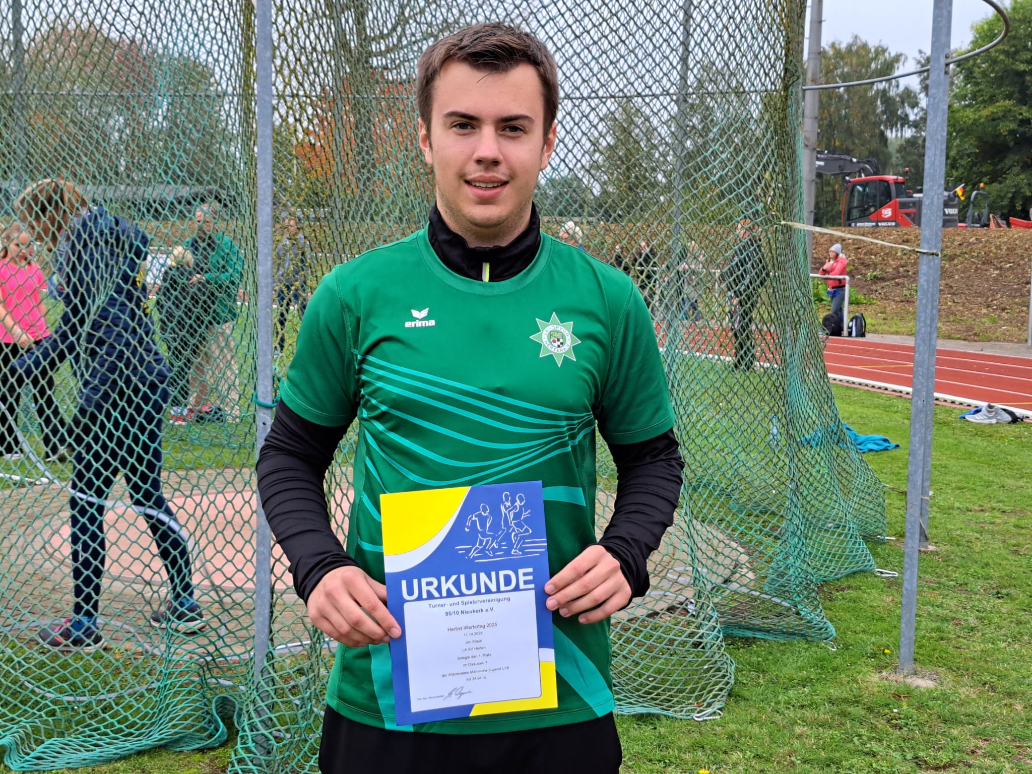 Jan Klaus, der seinen letzten Wettkampf in der AK MJU18 bestritt, erbrachte konstant starke Leistungen mit dem 1,5 kg-schweren Diskus. Dabei erzielte er mit 34.94 m im letzten Versuch eine neue persönliche Bestleistung und verfehlte nur knapp sein Saisonziel von 35,00 m. Ab dem kommenden Jahr gehört Jan der Altersklasse MJ U20 an und wird mit dem 1,75kg Diskus starten.